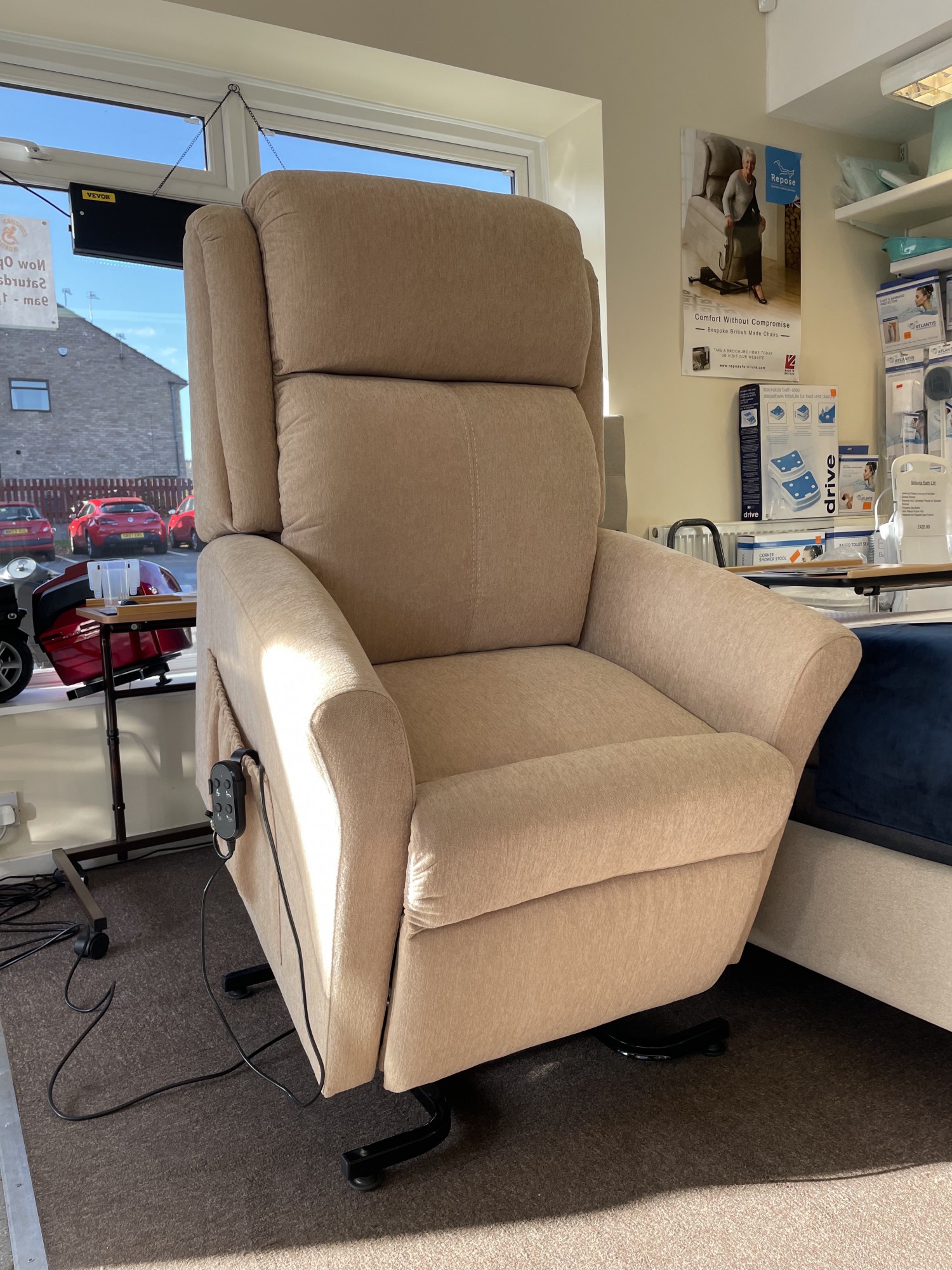 There are two convenient side pockets as standard for easy storage. A safety key is built into the Memphis hand controller, preventing acidental movement and entrapment.