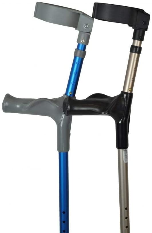 Forearm Crutches have an anatomical soft grip designed to support the palm and spread the pressure, for increasing comfort. Leg and forearm sections adjust independently for a custom fit.
